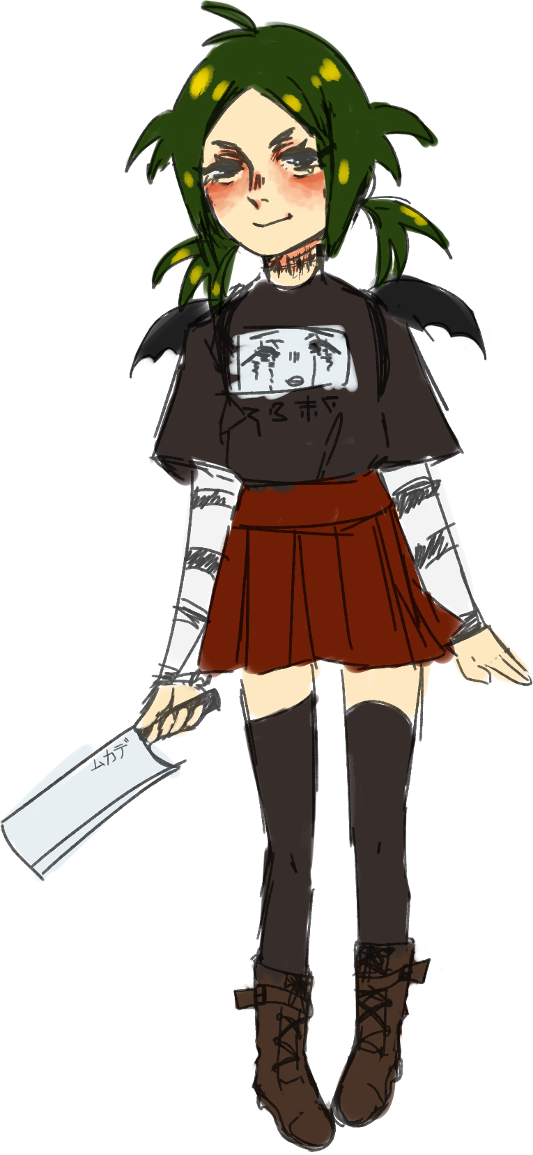 a girl who likes to walk around the town of crucio. always carries her backpack and a nata hatchet with her.