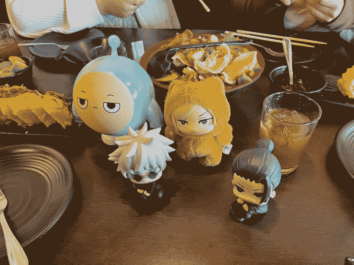 one of my friends gifted me the blue egg and some stickers :P today was tiring, but it was fun. the nanami, gojo and geto is from another friend. i forgot my small toji so we could took pics of them together! T_T oh well, some other time.